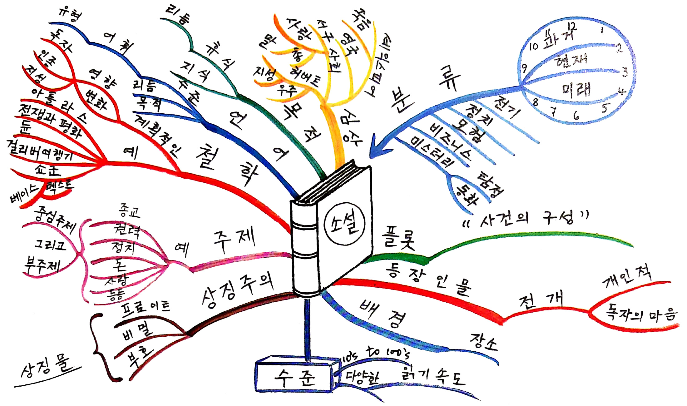 이 그림은 마인드맵이다. 마인드맵은 사고가 방사형으로 퍼져 나간다는 특징을 바탕으로 만들어낸 정리 도구이다. 그러니 마인드맵을 보면 연상되어서 동시에 활성화된다는 것이 무엇인지 '이해'하기 쉬울 것 같다.