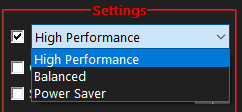 체크하고 옵션을 눌러주면 Balanced(균형 조정), Power Saver(절전)으로도 변경할 수 있다.