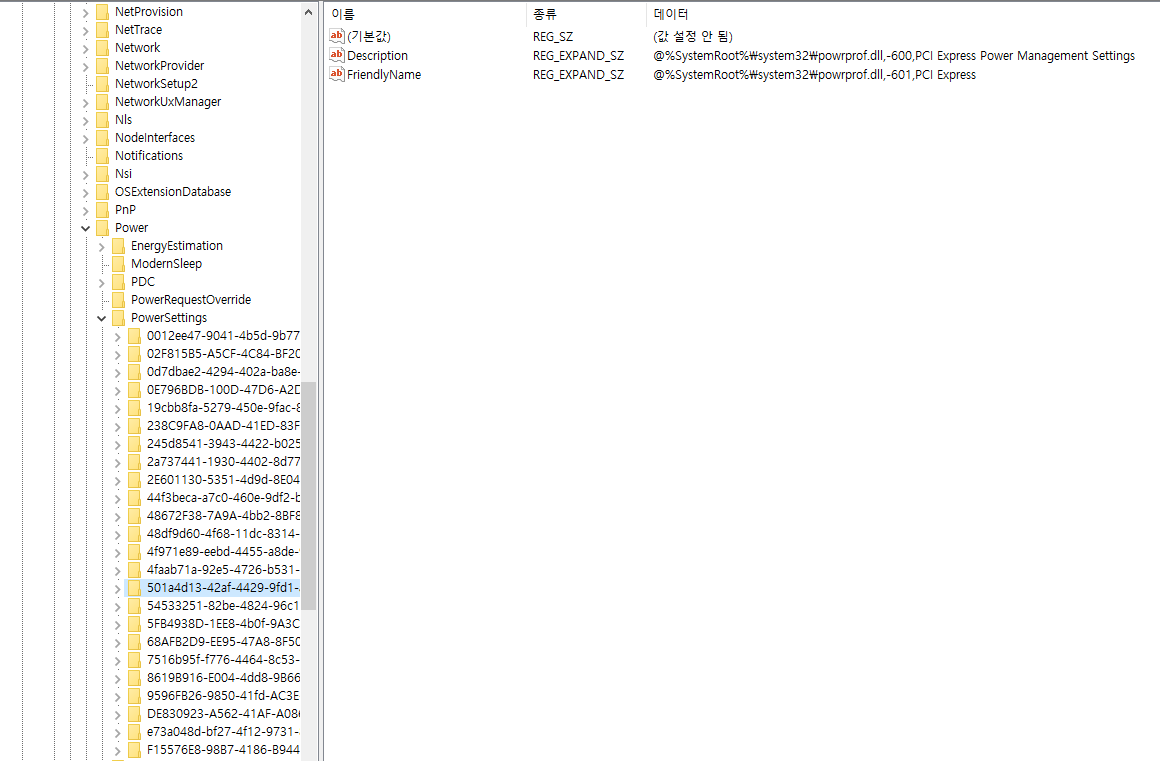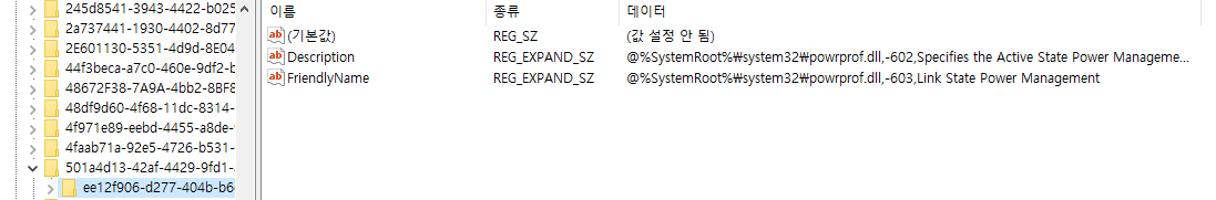 (참고로, HKEY_LOCAL_MACHINE\SYSTEM\CurrentControlSet\Control\Power\PowerSettings