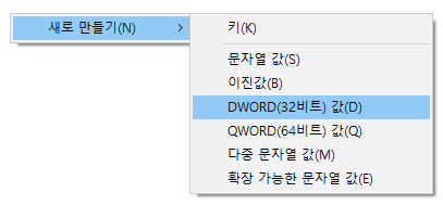 위의 주소를 따라가서 하위 키들을 열면 이런 식으로 나올 것이다.