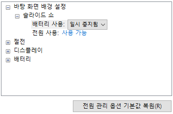 하지만 전원 옵션이 막힌 저전력 노트북은 이렇게만 나온다.