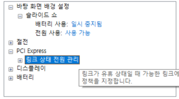 사실상 유용한 전원 옵션은 다 막혀있다. 여기서 필요한 전원 옵션을 해금하려고 한다.