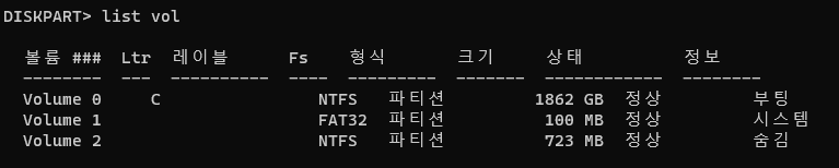2. diskpart 입력