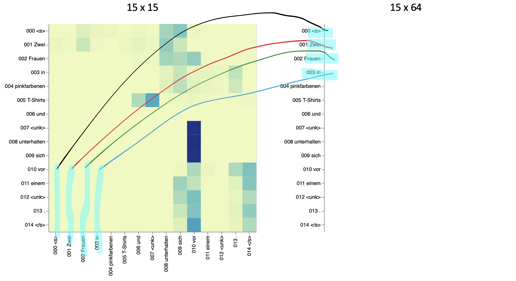 디코더에서 질문하는 정보(Query)와 인코딩된 값(Key)의 어텐션을 보고