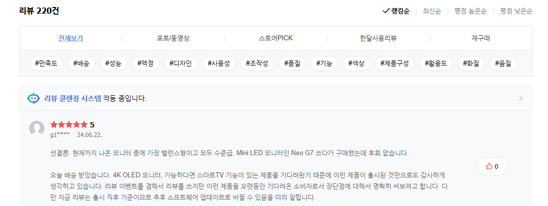 약간의 수고로움만 감수하면 스마트 기능으로 인해서 처음 평처럼 가장 밸런스 있는 모니터가 된다고 생각한다.